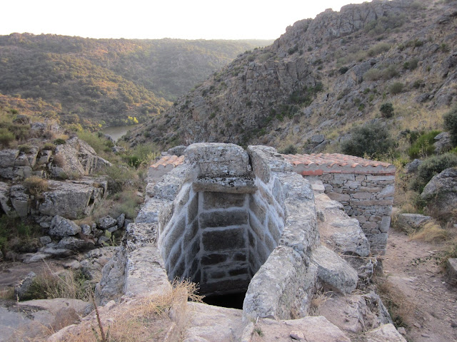 El antiguo molino, ahora reconstruido, al fondo el río.